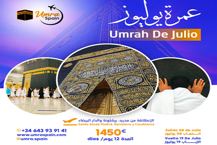 Vive la experiencia espiritual más significativa de tu vida este verano con nuestro paquete Umrah Julio 2025. Un viaje cuidadosamente organizado del 08 al 19 de julio, con salida desde Madrid, Barcelona y Casablanca, diseñado para ofrecerte tranquilidad, guía experta y máxima comodidad durante todo el trayecto.
